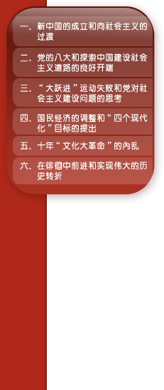 五、十年“文化大革命”的内乱 1966年,正当国民经济的调整基本完成,国家开始执行第三个五年计划的时候,意识形态领域的批判运动逐渐发展成矛头指向中国共产党的领导层的政治运动。一场长达十年、给党和人民造成严重灾难的“文化大革命”爆发了。